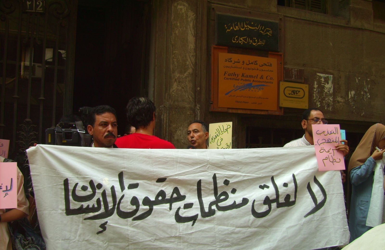 لافتة في مظاهرة مصرية «لا لغلق منظمات حقوق الإنسان» - أرشيفية