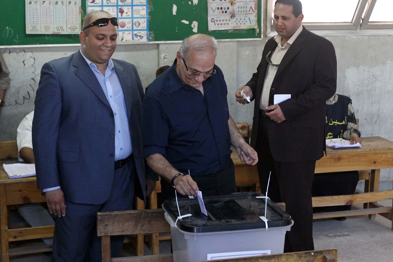 الفريق أحمد شفيق أثناء إدلائه بصوته في انتخابات ماضية