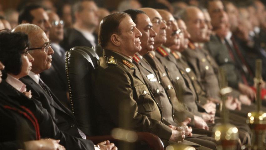 سامي عنان وأحمد شفيق رفقة قادة عسكرين آخرين في أعقاب الانقلاب