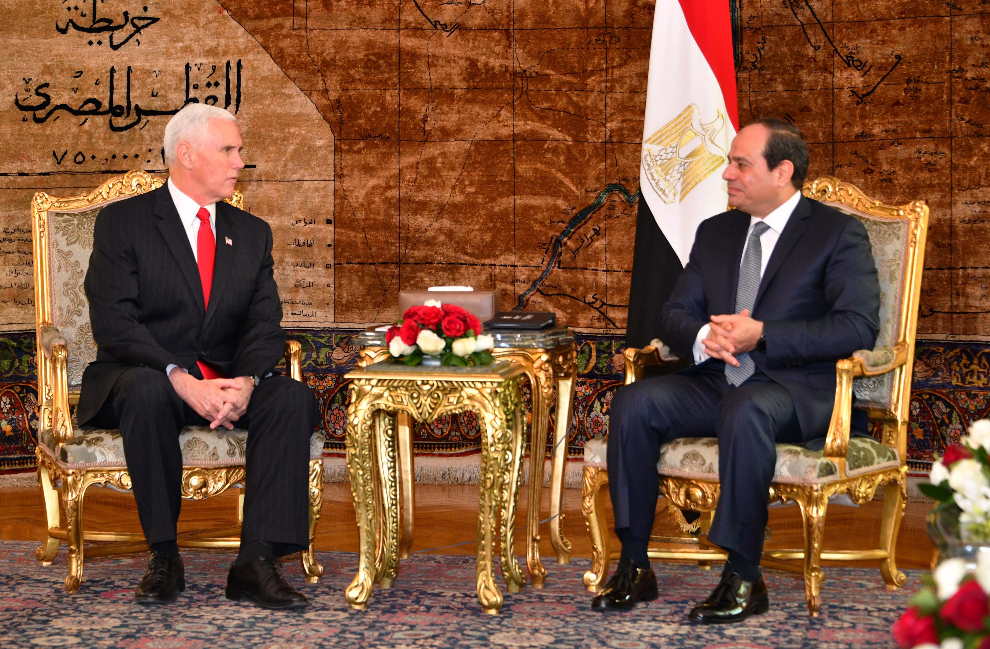قال نائب الرئيس الأميركي، مايك بنس، إنه ناقش مع عبدالفتاح السيسي، خلال لقائهما أمس، قضية أميركيين اثنين مسجونين في مصر منذ 2013، بالإضافة إلى إصلاح القوانين المصرية التي تفرض قيودا فيما يتعلق بالمنظمات غير الحكومية.
