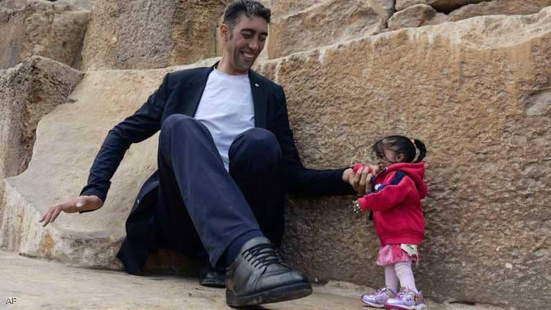 أطول رجل في العالم وأقصر مرأة في العالم في زيارتهما لأهرامات مصر