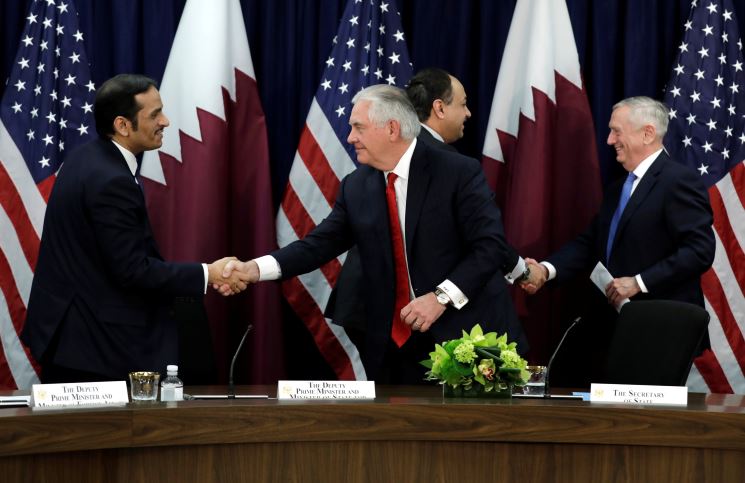 حضر الجلسة وزير الخارجية الأميركي «ريكس تيلرسون» ووزير الدفاع الأميركي «جيمس ماتيس»، ونظيراهما القطريان الشيخ «محمد بن عبدالرحمن آل ثاني» و«خالد بن محمد العطية»، ووفد رفيع المستوى من السياسيين ورجال الأعمال القطريين.