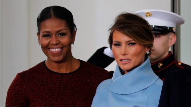 وحصلت ميشيل على هدية ميلانيا في شهر يناير 2017، وقت تنصيب ترامب رئيسًا؛ وتناقلت وسائل الإعلام لقطات تكشف تعرّضها للإحراج، بعدما التقت بميلانيا ولم تعلم ميشيل أين تضع الهدية وهما على وشك التقاط الصورة الرسمية الخاصة بتسليم أوباما البيت الأبيض إلى ترامب، ولكن تدخل باراك لينقذ الموقف وتسلّم الهدية منها وأدخلها إلى البيت الأبيض.