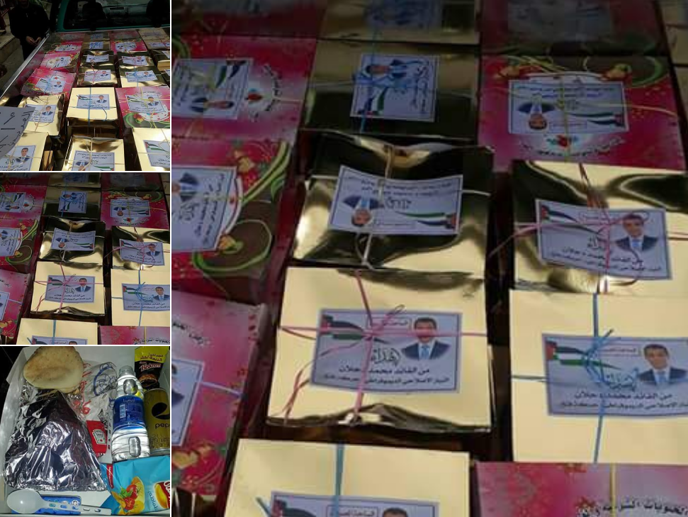 وجبات غذائية عليها صور دحلان توزع بالأكمنة الأمنية في العريش