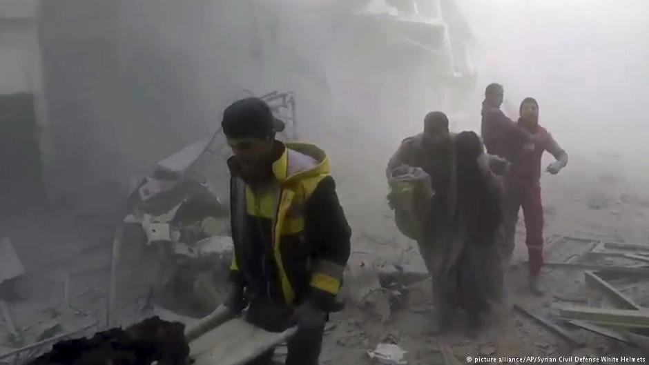 ونشر الدفاع المدني السوري (الخوذ البيضاء)، عبر حسابه على «تويتر»، عن قصف قوات النظام الغوطة الشرقية بالغازات السامة، و«أن قوات النظام قصفت بلدة «الشيفونية» بأسلحة كيماوية، تتضمن غاز الكلور السام، تأثر بها 16 مدنيا، كما بث الدفاع المدني في ريف دمشق مقطعا مصورا يظهر لحظة استهداف النظام السوري لطواقمه بقصف مباشر أثناء محاولاتهم إنقاذ المدنيين في بلدة حزة بالغوطة.