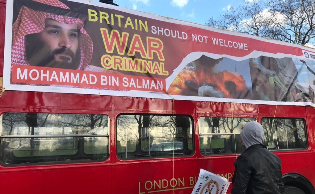 على الرغم من التحركات السعودية لإخراج مشهد زيارة ولي عهد المملكة العربية السعودية، محمد بن سلمان، بصورة المرحب به، والتعاقد مع شركات الدعاية البريطانية من أجل تلميع الشخصية، إلا أن الاحتجاجات ضربت الشوارع استقبالا للزائر السعودي.
