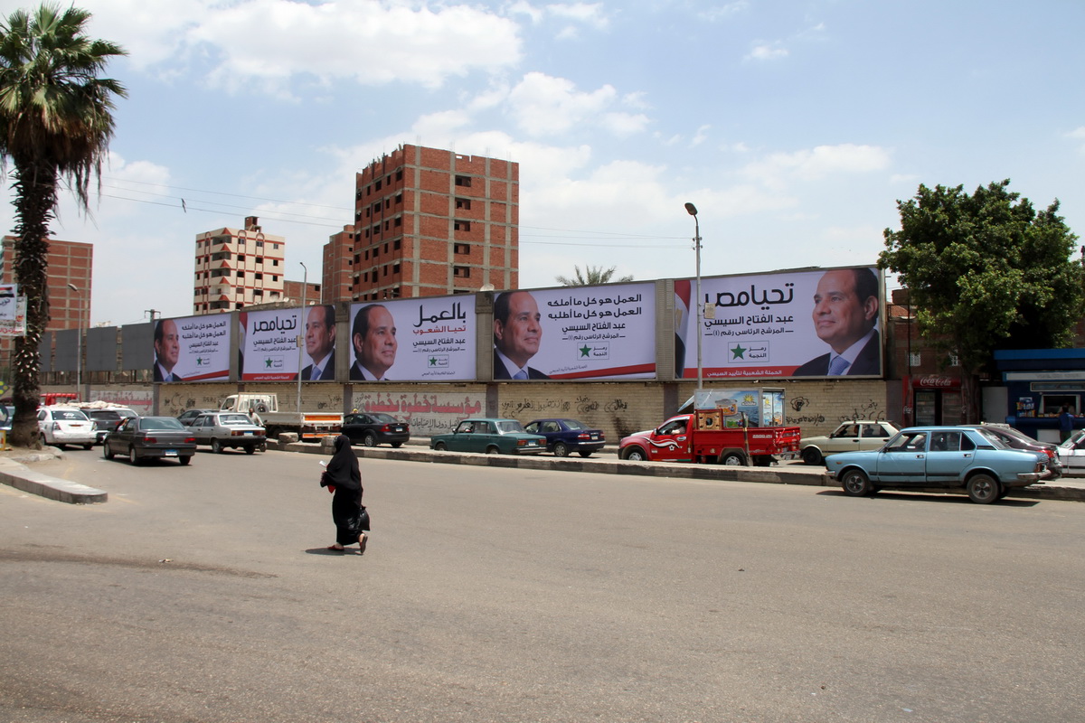 في مشهد سريالي من فيلم «فانيلا سكاي» عام 2001، يمر «توم كروز» عبر ميدان مهجور قبل أن يصرخ في يأس. وفي نسخة ساخرة واسعة النطاق في مصر، يمتلئ الميدان بلوحات إعلانية لعبدالفتاح السيسي؛ فبمجرد أن تفتح عينيك في أيّ مكان بمصر تطالعك اللوحات الإعلانية واللافتات والملصقات التي تشيد بالزعيم، المقرر إعادة انتخابه هذا الأسبوع، وينافسه سياسي غير معروف لم يبذل أيّ جهد لتحديه.