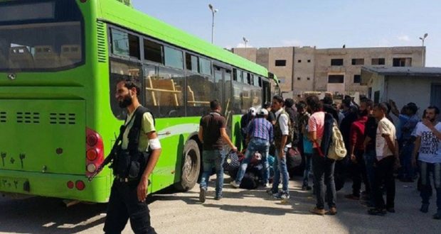 ووصلت، صباح اليوم، قافلة تضم 17 حافلة تحمل نحو 1000 شخص وفقا لوكالة الأنباء التابعة للنظام، كدفعة أولى بعد تأخر دام لساعات، لبدء عملية تهجيرهم نحو الشمال السوري.