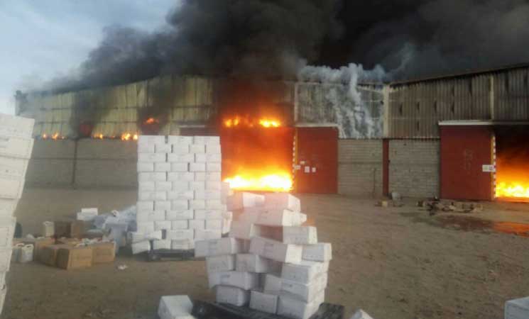 بالصور.. حريق يلتهم 5 مخازن غذاء تتبع الأمم المتحدة باليمن
