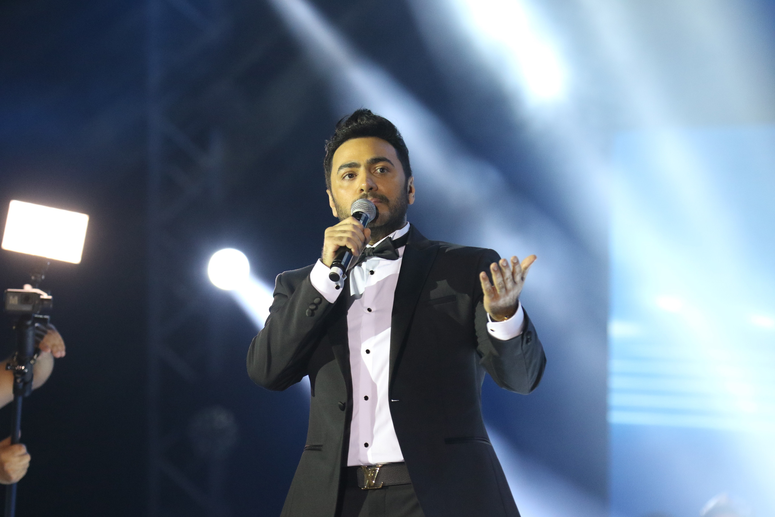 بدأ تامر الحفل بتوجيه الشكر للسعودية حكومة وشعبًا، قائلًا: «دعوتي لإقامة هذا الحفل هي الأكثر أهمية في حياتي»، ومؤكدًا لجمهوره بأنه يحبهم، مضيفًا أنه يشعر وكأنه يغني للمرة الأولى.