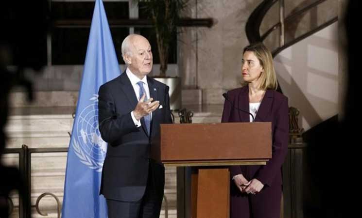 من جانبها، قالت مسؤولة السياسة الخارجية في الاتحاد الأوروبي، فيديريكا موغيريني، إنه «من الضروري استئناف محادثات السلام التي تشرف عليها الأمم المتحدة لإنهاء الحرب التي دخلت عامها الثامن».
