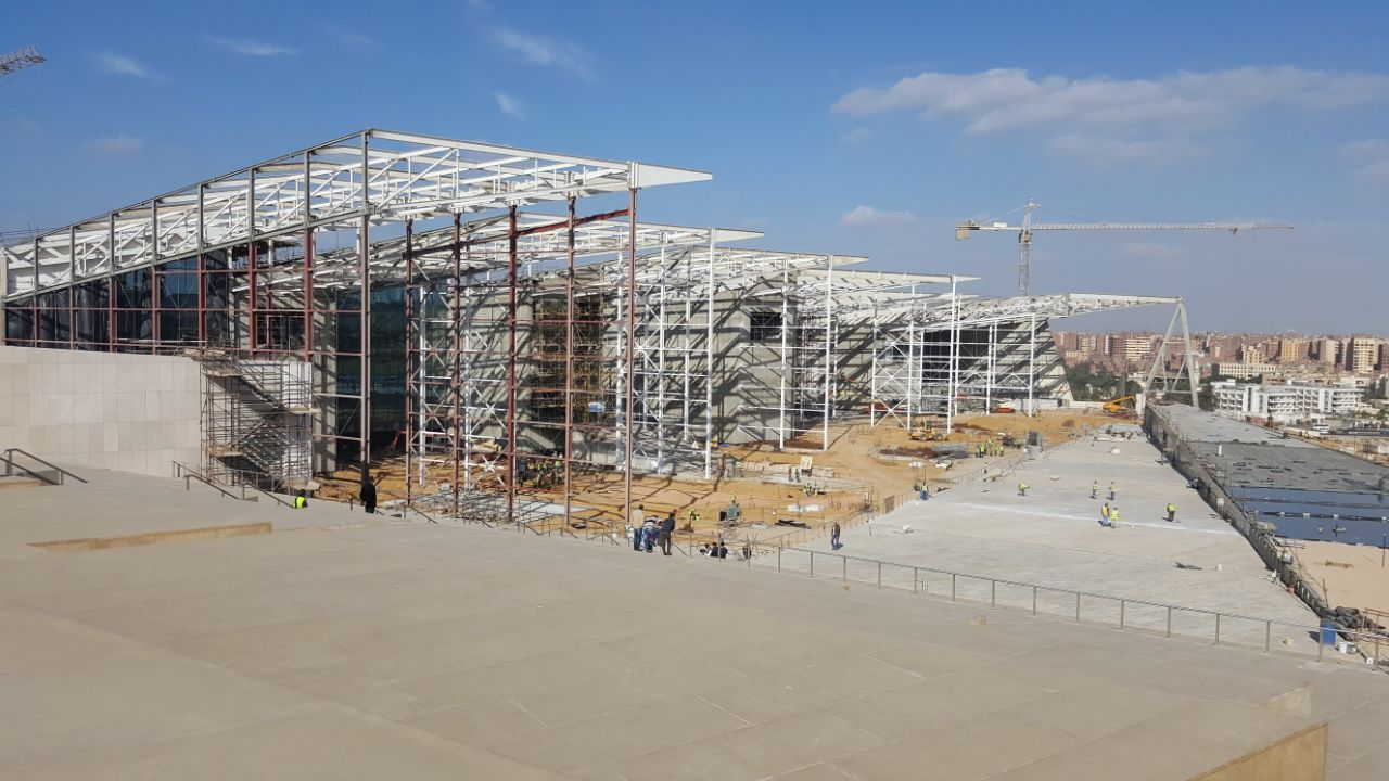 اندلع، اليوم الأحد، حريق بأحد المباني الإنشائية بالمتحف المصري الكبير في منطقة الهرم، بعيدا عن منطقة المعامل الموجود بها الآثار لترميمها.