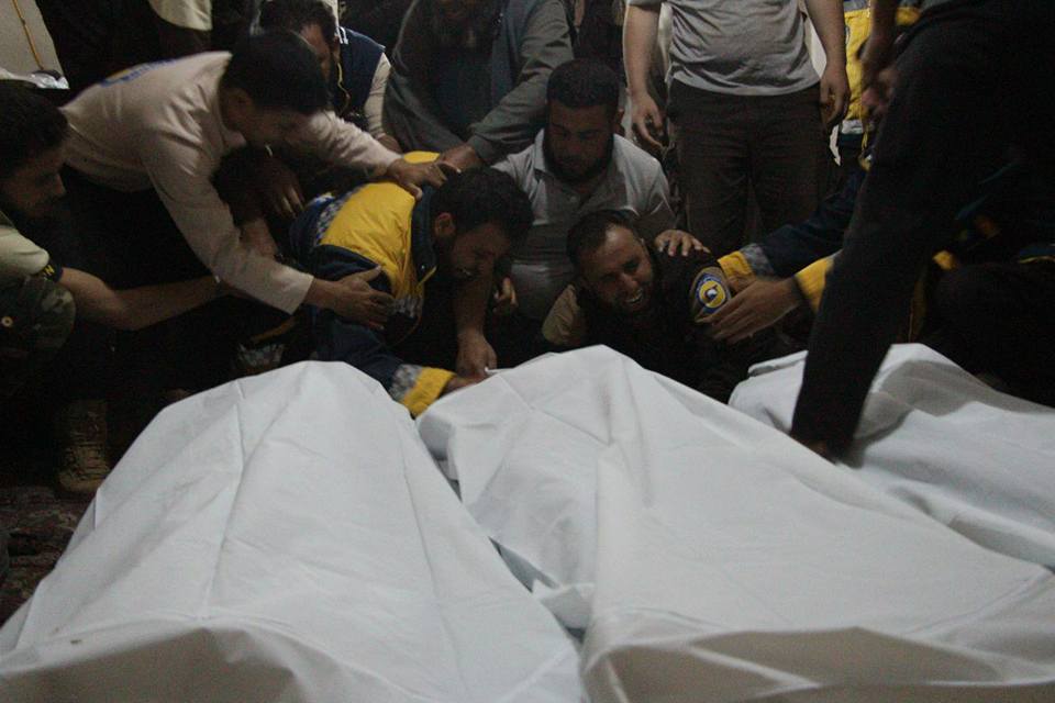 خمسة شهداء واثنين جرحى اثر استهدافهم من قبل خفافيش الظلام بعد منتصف الليل في احد مراكز الدفاع المدني في ريف حلب قرية #تل_حديا pic.twitter.com/5xigKuU2dX— محمد حمادة (@hmade1992m) May 26, 2018