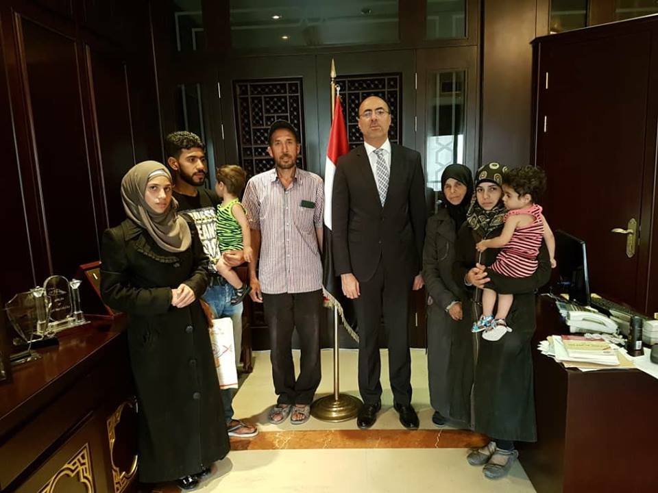 وقام القائم بأعمال السفارة المصرية باستلام المواطن «أحمد محمود موسى الذي تم إخراجه السبت 26 مايو من مركز إيواء عدرا الصناعية، والمواطن طارق محمد أمين عبدالمجيد وعائلته المكونة من والدته حسنية عبدالقادر قطط، وشقيقته شيماء، وزوجته السورية مروة مروان بكير بالإضافة إلى أطفاله الذين تم إخراجهم اليوم أيضا من مركز إيواء نجها».