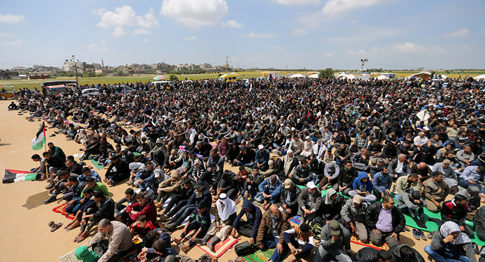 ويتجمهر آلاف الفلسطينيين، في مواقع عدة قرب السياج الفاصل بين القطاع و(إسرائيل)، منذ نهاية شهر مارس الماضي؛ للمطالبة بعودة اللاجئين الفلسطينيين إلى قراهم ومدنهم التي هجروا منها عام 1948، ورفع الحصار عن قطاع غزة.
