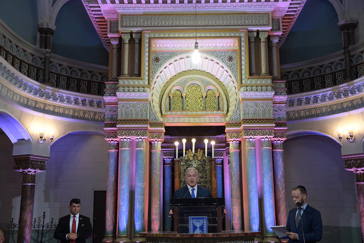 ويعد كنيس “الكورال” الذي زاره رئيس وزراء دولة الاحتلال، هو الكنيس الوحيد الذي صمد في الهولوكوست، قبل 75 عاما.