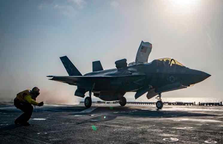 والخميس، نفذت طائرات الشبح اف-35 الأميركية أولى طلعاتها القتالية في ولاية قندهار في أفغانستان، استهدفت مواقع لحركة طالبان بمشاركة أكثر من طائرة أقلعت من سفينة الهجوم البرمائية “يو اس اس اسيكس”.