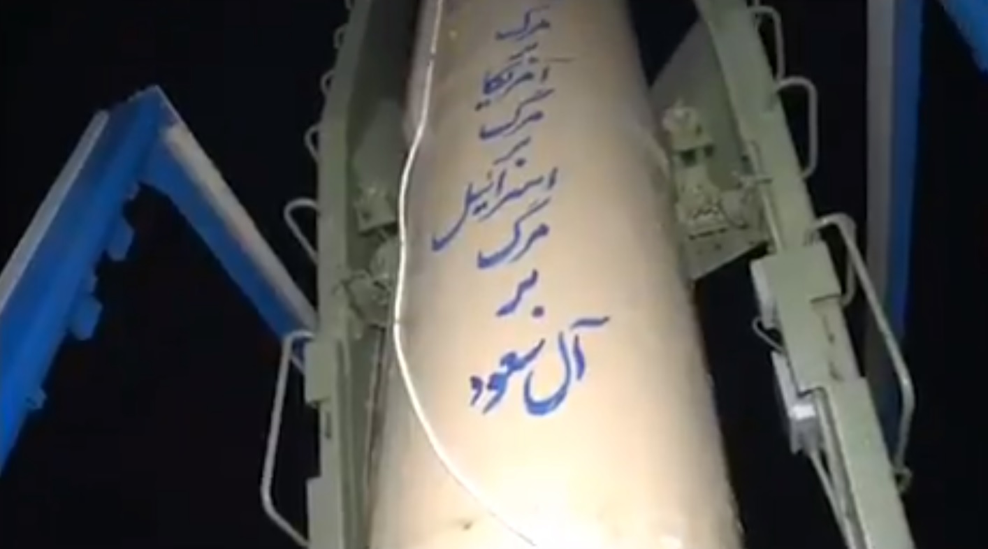 وأظهرت صور الصواريخ التي بثتها القناة الإخبارية الإيرانية شعارات الموت لأمريكا والموت لإسرائيل، والموت لآل سعود في إشارة إلى الأسرة الحاكمة في المملكة العربية السعودية.