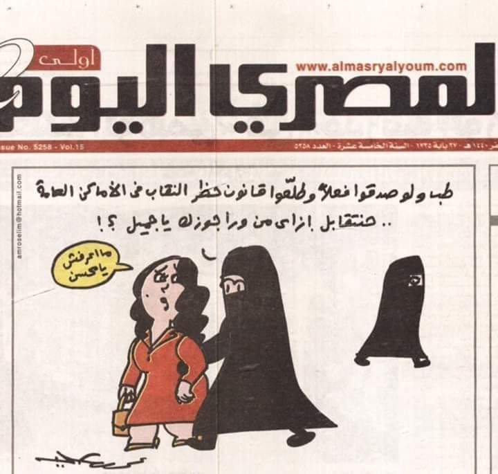 كاريكاتير أقل ما يقال عليه مقرف ومنحط من جريدة زبالة اسمها المصري اليوم عن موضوع #حظر_النقاب!!!