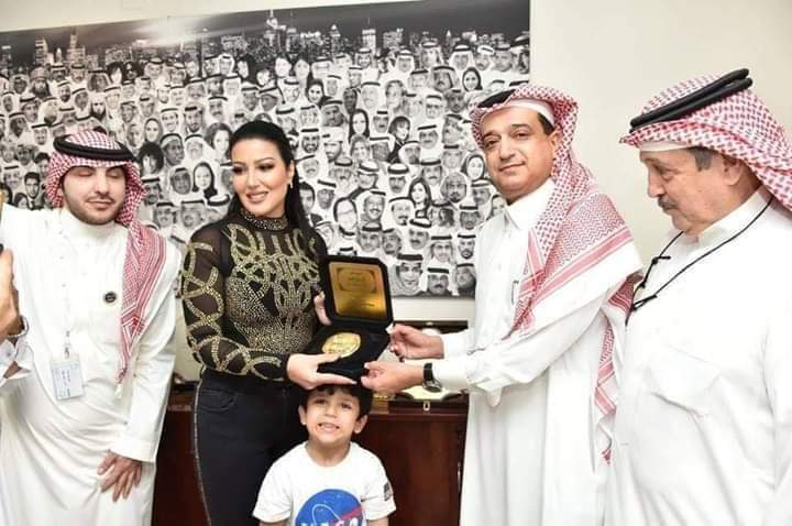 وأهدت جمعية المنتجين والموزعين السعوديين، الدرع إلى الخشاب، أثناء الزيارة التي تقوم بها إلى الرياض، لحضور ملتقى المرأة الذي أطلق ضمن رؤية ولي العهد 2030، وبالتعاون مع وزارة الإعلام.