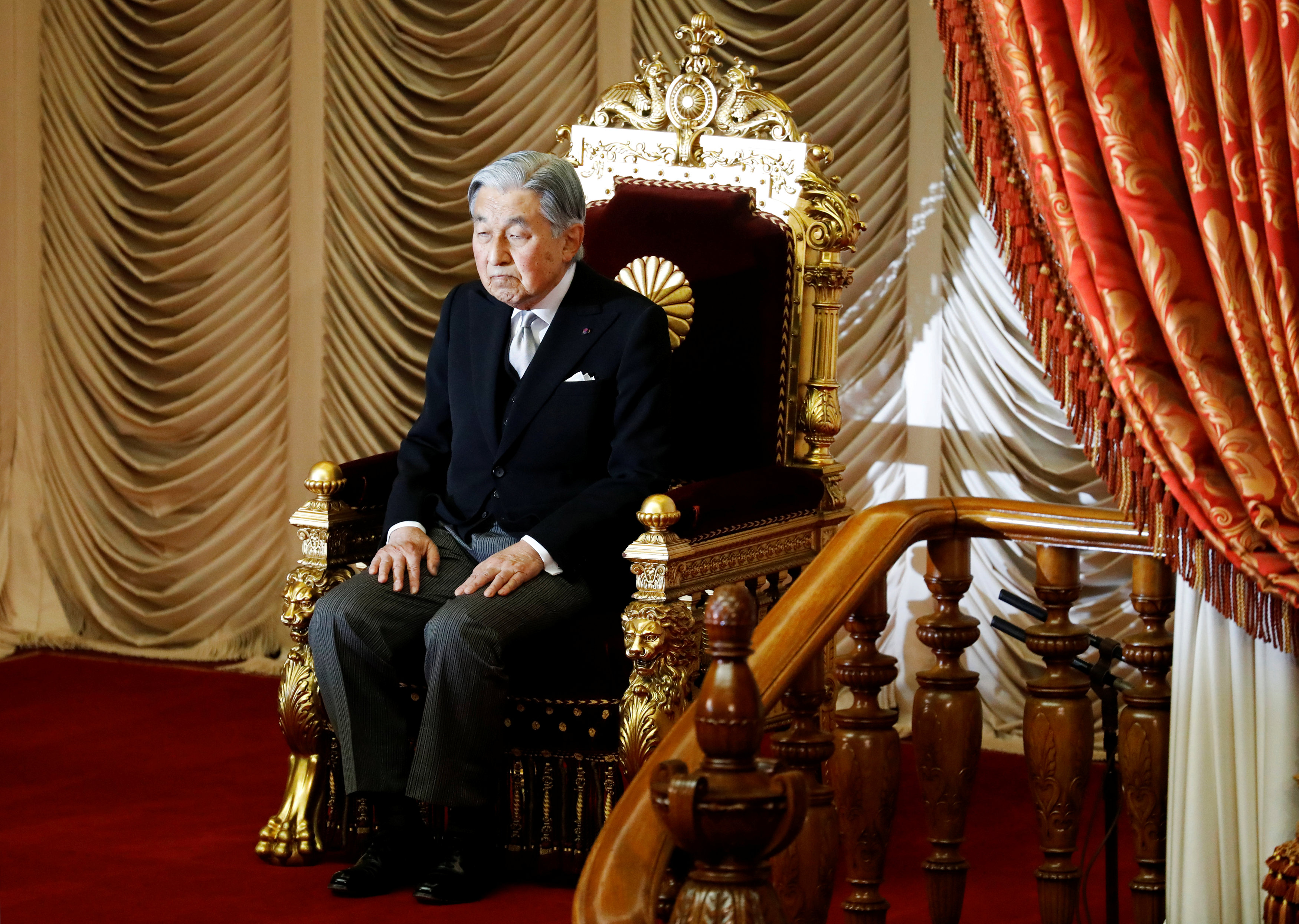 جاء ذلك في خطابه الأخير خلال احتفالات بروتوكولية رسمية، أقيمت في القصر الإمبراطوري، أعلن فيها تنازله لصالح نجله الأكبر الأمير ناروهيتو (59 عاما).