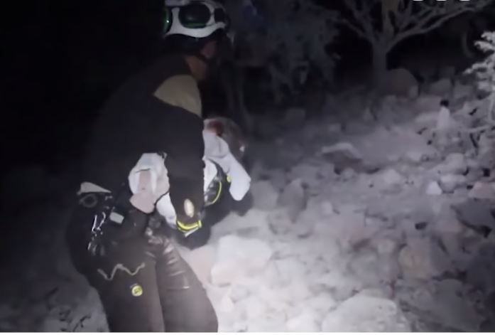 رضيعة تئن لحظة انتشالها من تحت الأنقاض في ريف إدلب