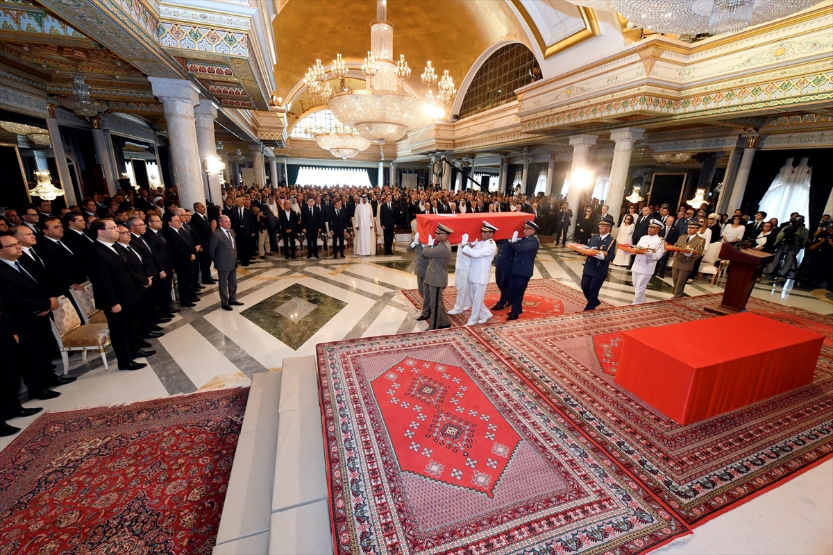 شهدت العاصمة التونسية، مراسم تأبين الرئيس الراحل «الباجي قائد السبسي»، السبت، بنقل الجثمان من دار السلام، مقر الإقامة الرئاسية، إلى قصر قرطاج الرئاسي، قبيل مواراته الثرى.