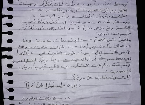 ووجهت المعتقلة رسالة الاستغاثة إلى نقيب الأطباء حسين خيري وعضو مجلس نقابة الأطباء منى مينا ونقيب أطباء القاهرة وأطباء مصر.