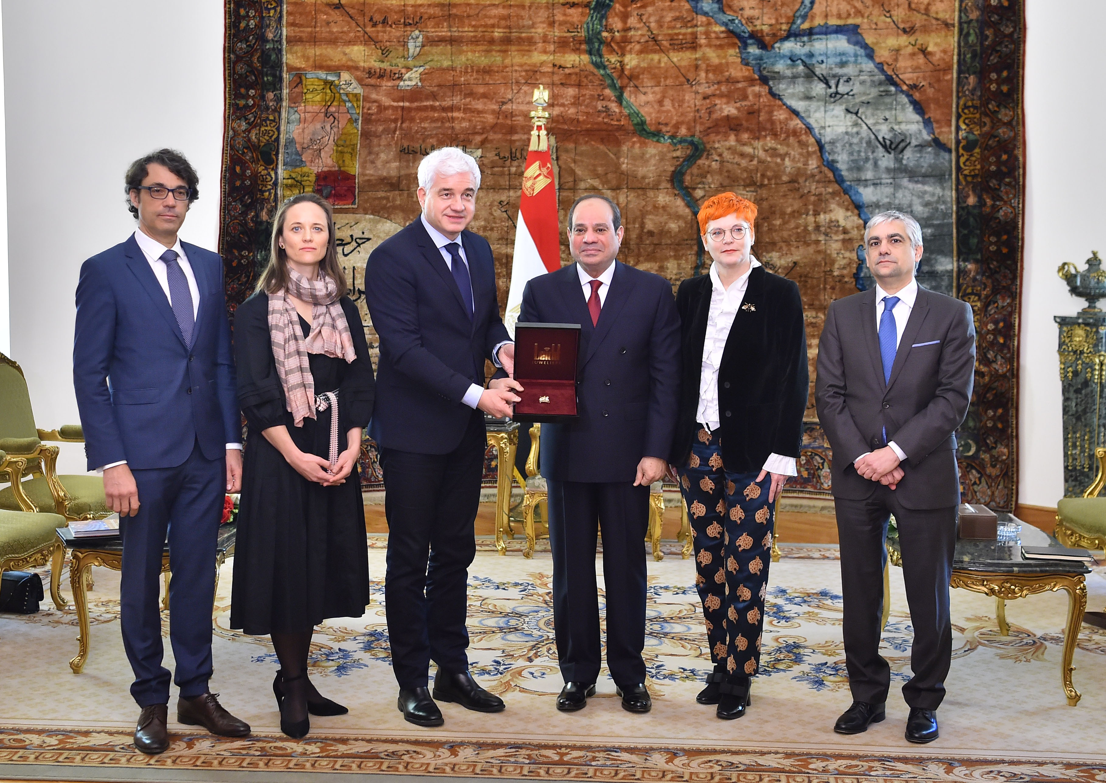 وسلم وفدا من دار أوبرا درسدن «زمبر أوبر»، الأحد الماضي، الوسام للسيسي في القاهرة، على الرغم من الانتقادات الموجهة لذلك.