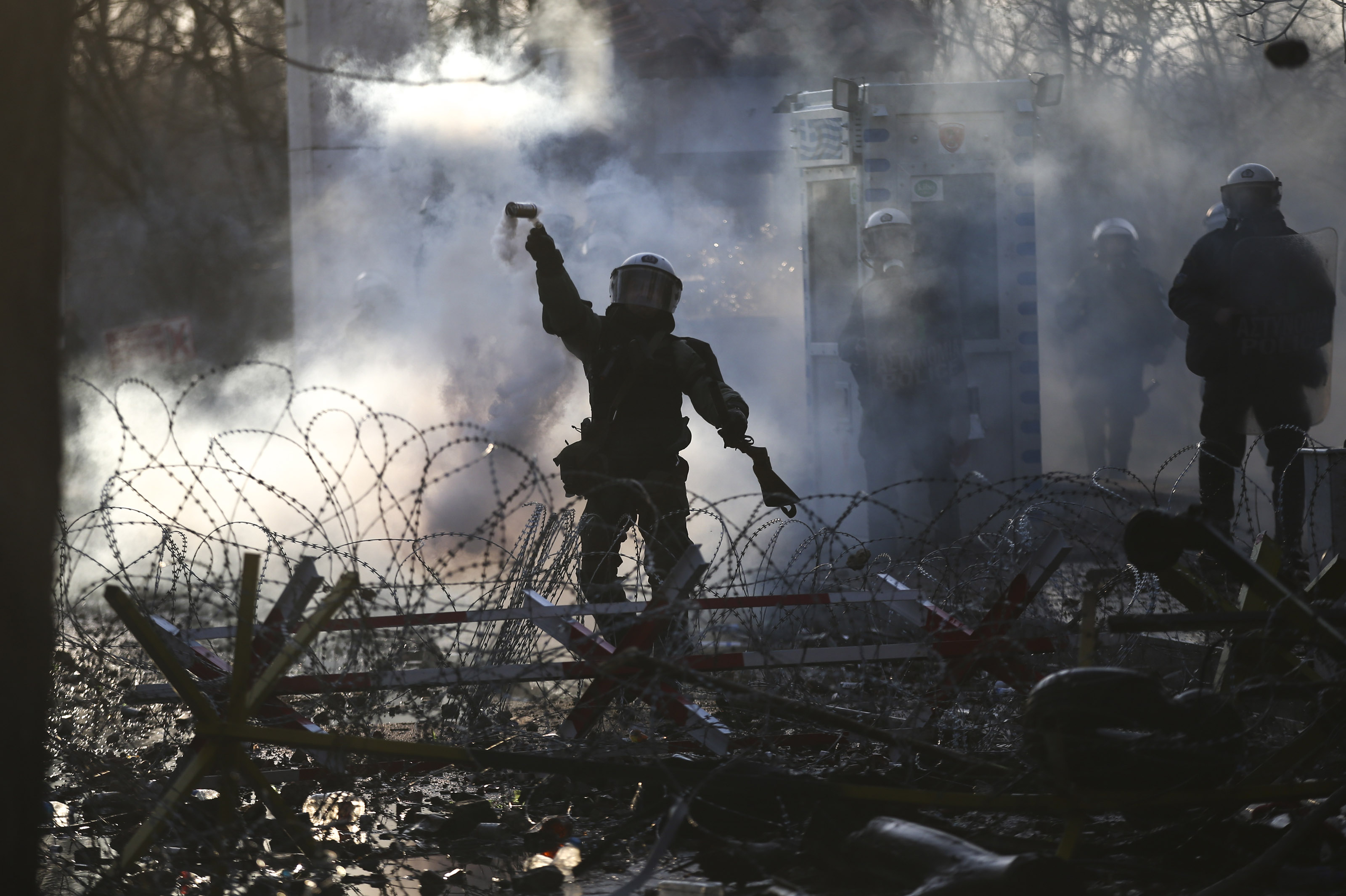 وتدخلت قوات الأمن اليونانية،  ضد المهاجرين في المنطقة العازلة مع تركيا، واستخدمت الرصاص المطاطي والغاز المسيل للدموع وقنابل صوتية وخراطيم المياه لتفريقهم.