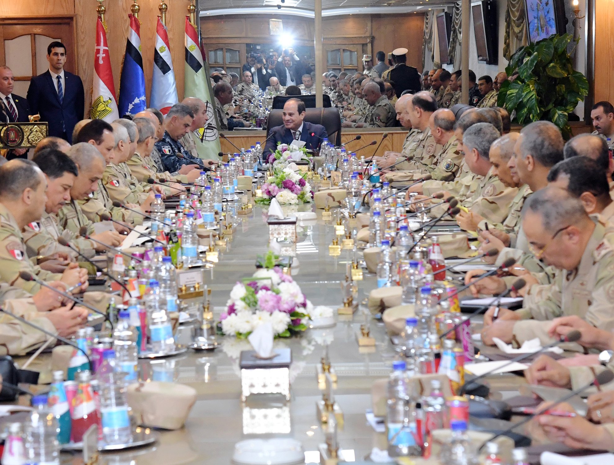 ترأس عبد الفتاح السيسي، اليوم، اجتماعا موسعاً لقيادات القوات المسلحة بمقر الأمانة العامة لوزارة الدفاع، مطالبا الجيش بالاستعداد القتالي لحماية أمن مصر القومي.