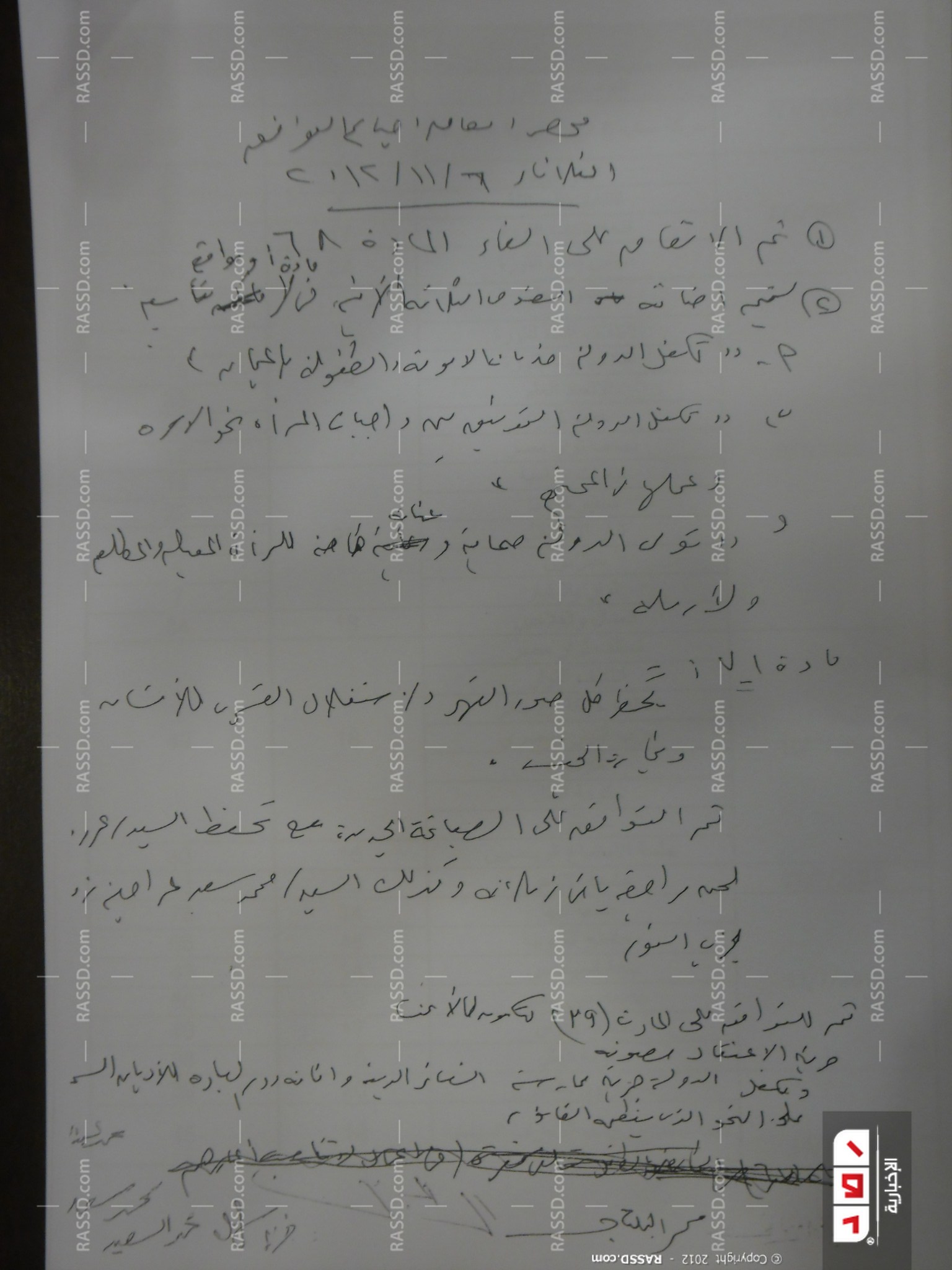حصلت شبكة "رصد" الإخبارية علي صورة من محاضر الجلسات التي عقدت بين التيار المدني والقوي الإسلامية بالجمعية التأسيسية والتي وقع عليها المنسحبون.