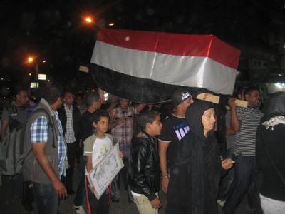 و انطلق المتظاهرون في مسيرة من ميدان الدهار إلى ميدان السقالة حاملين النعوش , ومطالبين بالقصاص للأبطال الذين ضحوا بأرواحهم حتى يحصل  الشعب على الحرية.