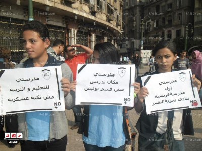 نظم العشرات من طلاب مدرسة ليسيه الحرية وقفة احتجاجية ظهر اليوم (الخميس) في شارع طلعت حرب؛ احتجاجا على اقتحام الشرطة للمدرسة وتحويلها لثكنة عسكرية لمواجهة المتظاهرين، على حد قولهم.