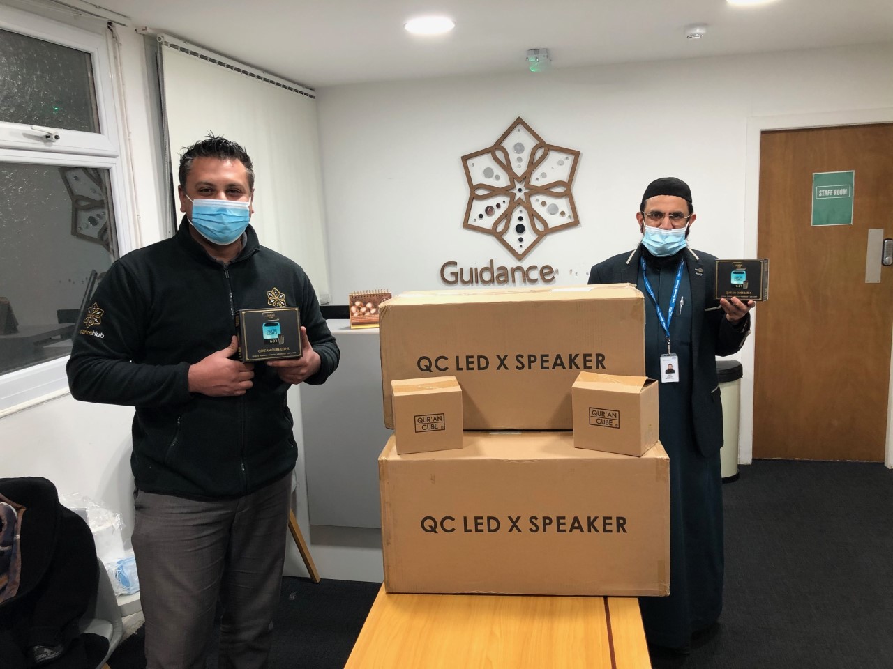 وقدمت مؤسسة «غايدانس هب (مركز التوجيه)» الخيرية في مانشستر، التبرعات التي تشتمل على 70 جهازا مشغلا للقرآن، تخليدا لذكرى السيدة آسيا شاه، وهي إحدى المتطوعات في المؤسسة، وتعمل كمنسقة للخدمات في مستشفى نورث مانشستر العام.