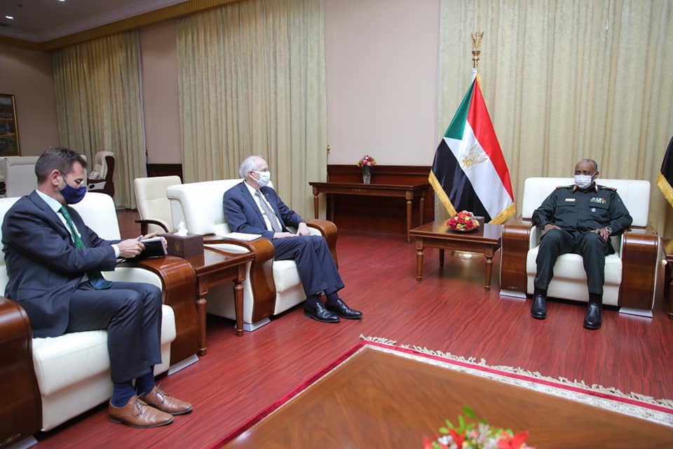 جاء ذلك لدى لقائه بالقصر الرئاسي في الخرطوم، المبعوثين الأميركي دونالد بوث والأوروبي ألكسندر روندوس، ورئيس بعثة الاتحاد الأوروبي بالخرطوم روبوت فإن دول، حسب بيان صادر عن المكتب الإعلامي لمجلس السيادة.