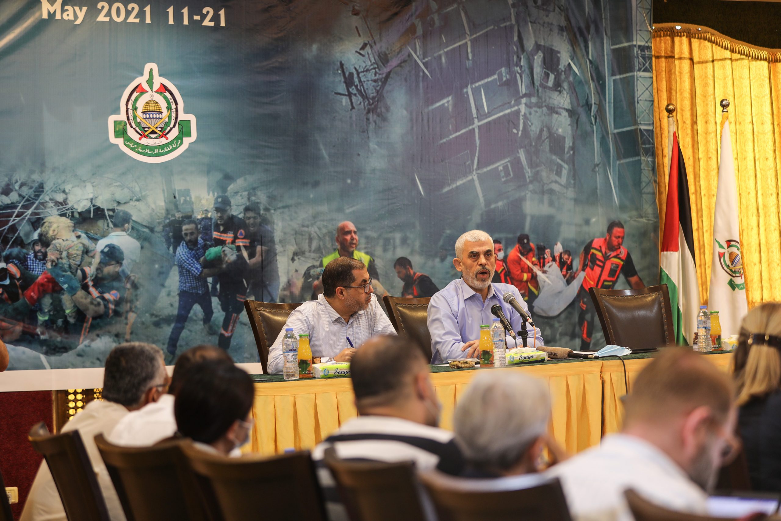 جاء ذلك في أول ظهور إعلامي للسنوار بعد العدوان الإسرائيلي على غزة، خلال مؤتمرين صحفيين، متتابعين، عقدهما بغزة، الأول خاص بالصحفيين الأجانب، والثاني خاص بالإعلام العربي.
