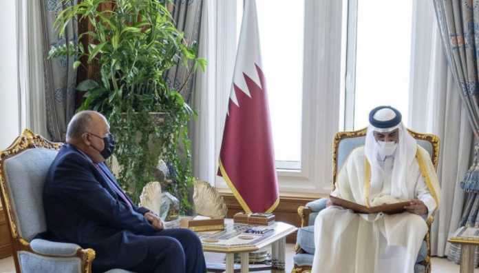 بدورها قالت وزارة الخارجية المصرية في بيان: “حاملا رسالة من الرئيس السيسي، التقى وزير الخارجية سامح شكري أمير قطر تميم بن حمد آل ثاني، خلال زيارته الحالية (غير محددة المدة) إلى الدوحة”، دون تفاصيل أكثر.
