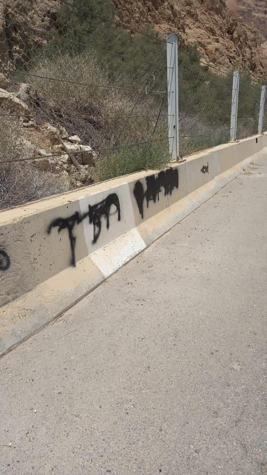 وقالت وكالة الأنباء الرسمية الفلسطينية، إن العبارات المسيئة كتبت على جوانب طريق يؤدي إلى البحر الميت (شرق).