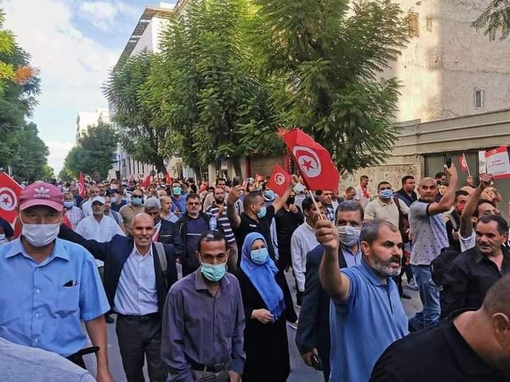ونظم آلاف المتظاهرين مسيرة حاشدة بعنوان “الحسم الديمقراطي” انطلقت من شارع ” خير الدين باشا” باتجاه شارع “الحبيب بورقيبة”، الذي شهد تواجدا أمنيا مكثفا وسط المدينة.