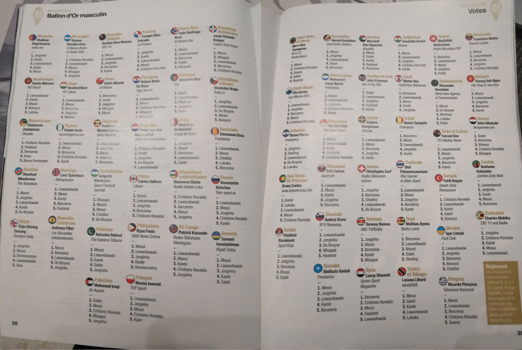 تداولت مواقع التواصل الاجتماعي في الساعات الماضية، تسريبات من تصويت الصحفيين في جائزة الكرة الذهبية «بالون دور» لعام 2021، لاختيار أفضل 5 لاعبين على مستوى العالم.
