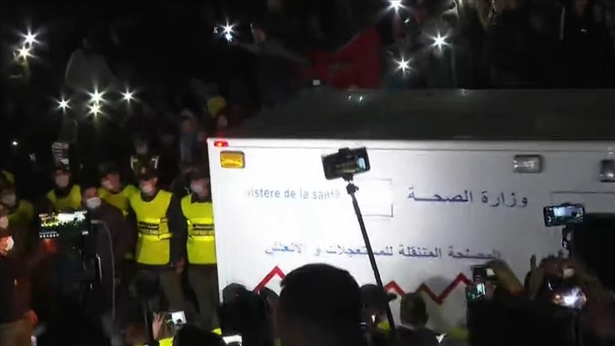 ووسط فرحة لم تكتمل، أخرجت فرق الإنقاذ المغربية جثمان الطفل ريان من النفق الموصل إلى البئر، وتم وضعه في سيارة إسعاف، قبل صدور البيان الملكي.