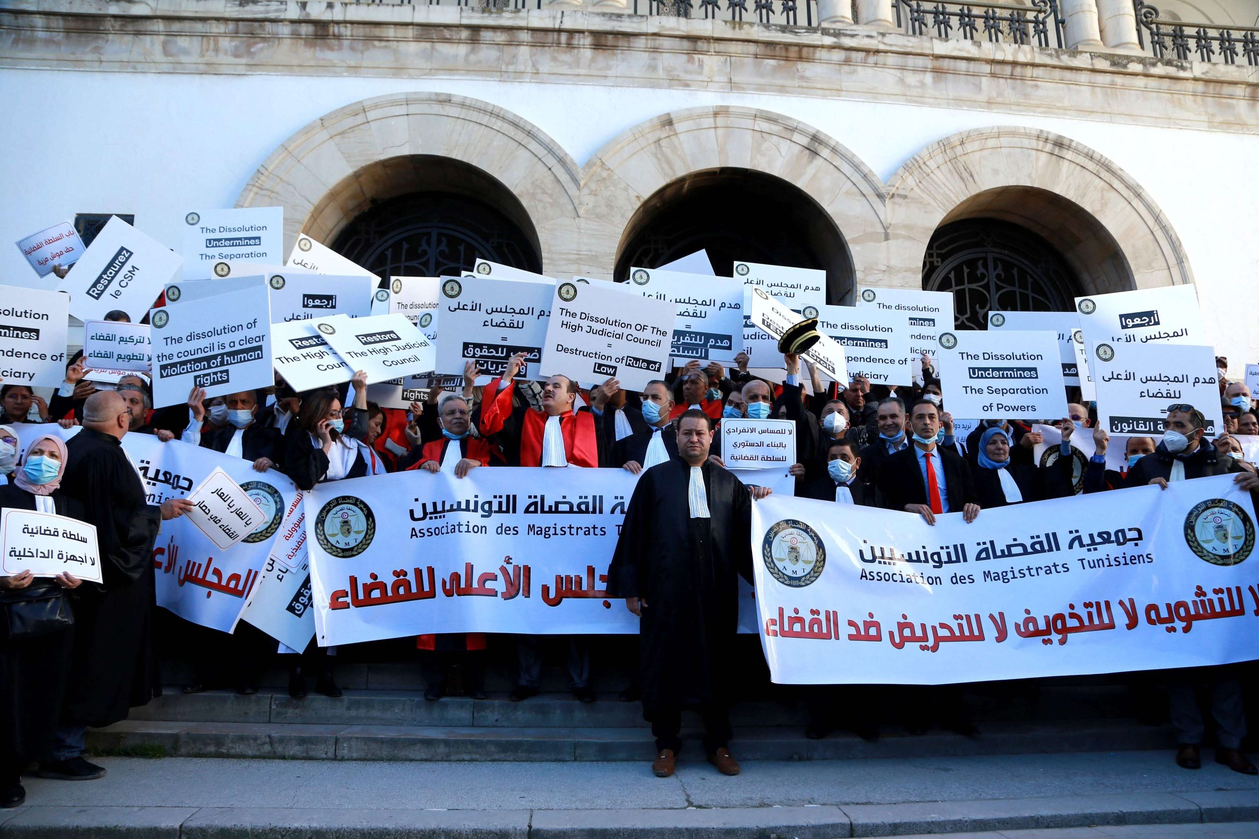 وفي 12 فبراير الجاري، أعلنت الرئاسة التونسية أن الرئيس قيس سعيد وقع مرسوما باستحداث «المجلس الأعلى المؤقت للقضاء»، ما أثار احتجاجات ورفضا من هيئات قضائية وقوى سياسية عديدة.