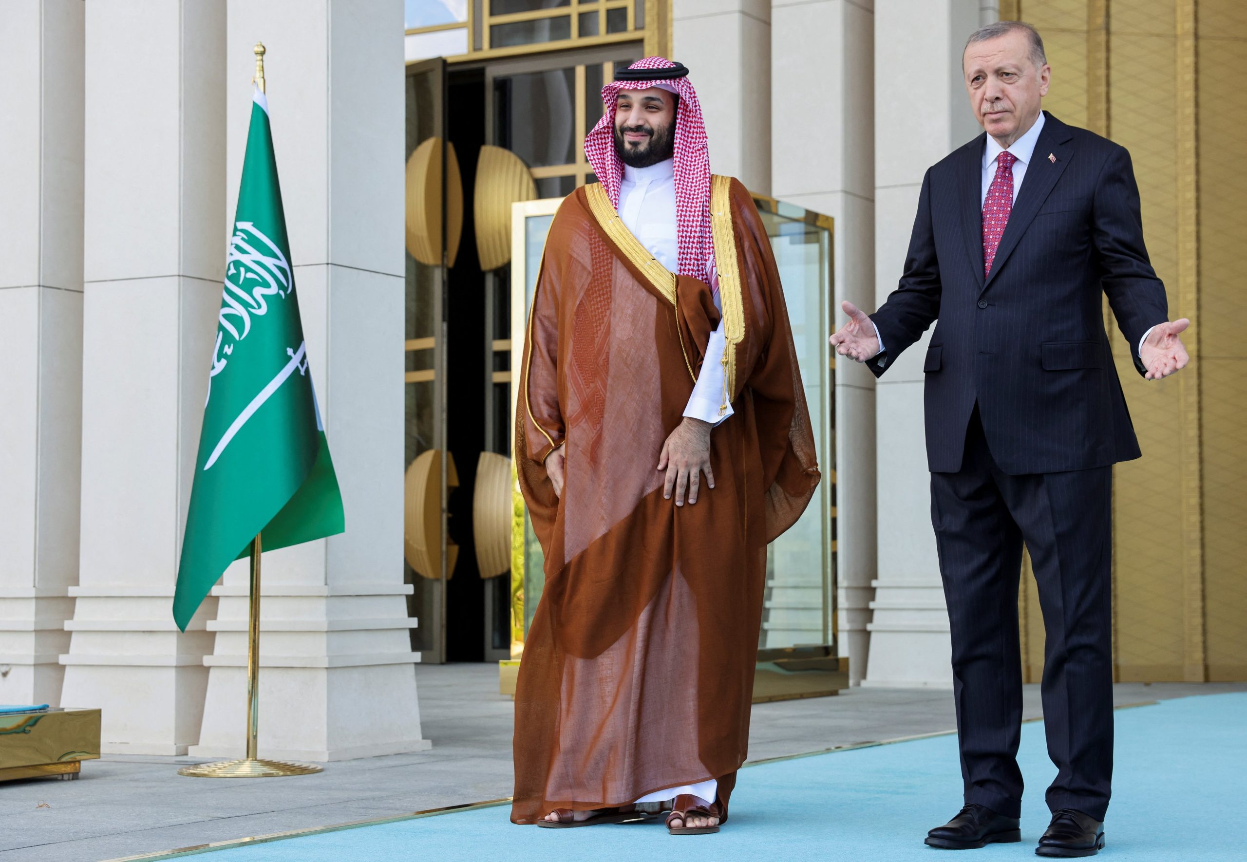 ووصل ابن سلمان إلى تركيا يوم الأربعاء، في أول زيارة لمسؤول سعودي رفيع إلى تركيا منذ مقتل خاشقجي، واستقبله أردوغان عند مدخل المجمع الرئاسي بتحية من المدفعية وحراس يرتدون الزي الأزرق على خيول ويحملون أعلام السعودية وتركيا.