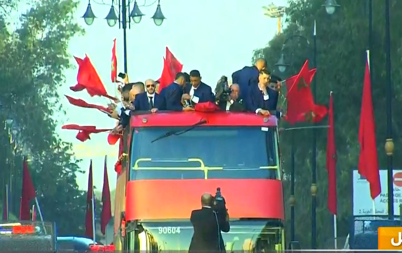 حافلة مكشوفة لمنتخب #المغرب تبدأ جولتها في شوارع الرباط وسط تجمع جماهيري كبيرpic.twitter.com/K3lRaINyP3