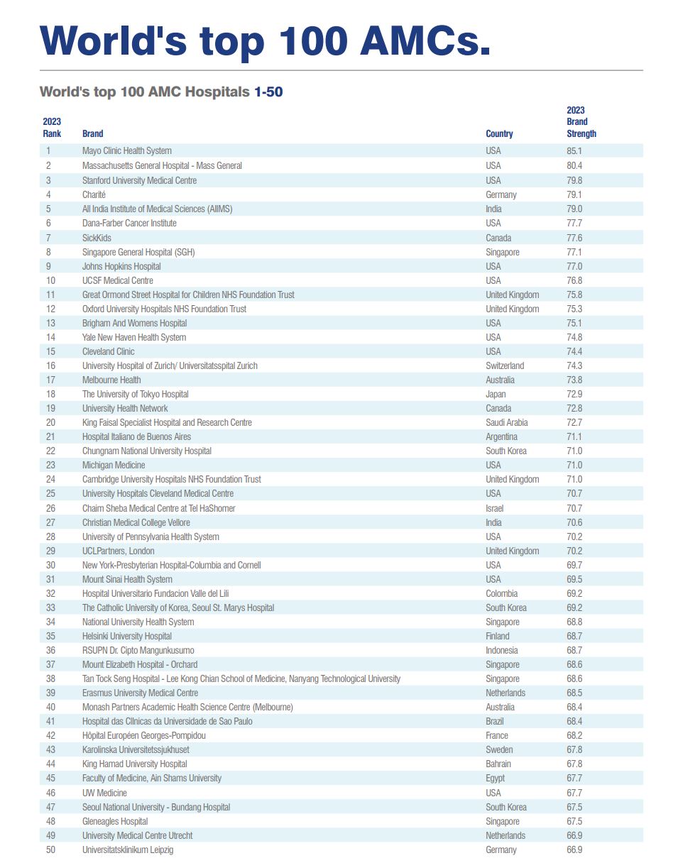ويعد تصنيف AMCs من التصنيفات العالمية التي تقوم بتقييم أداء المستشفيات الرائدة على مستوى العالم.