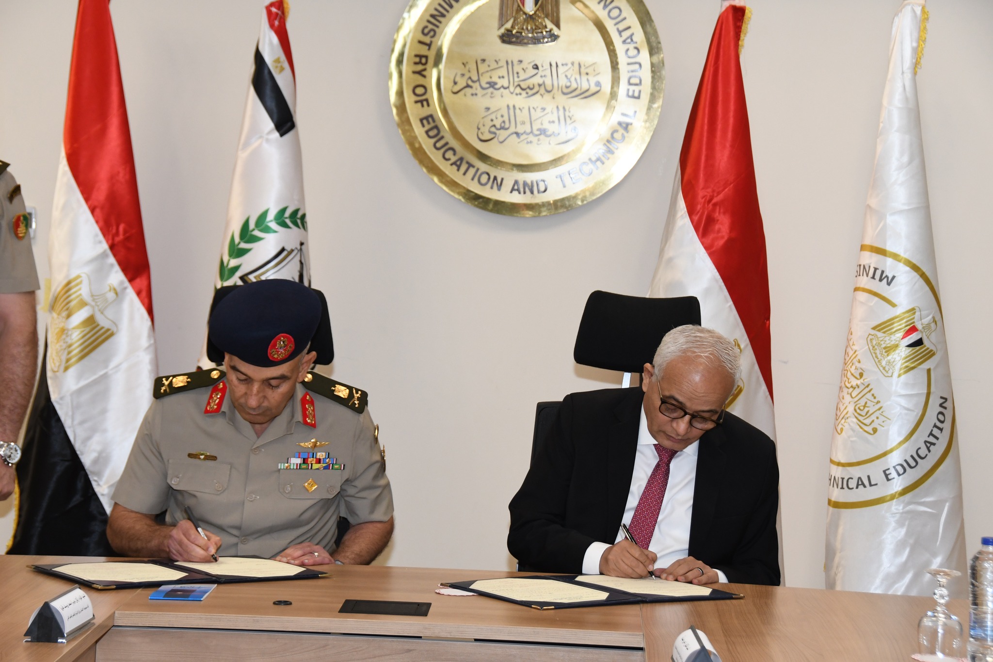 أعلن المتحدث العسكري توقيع بروتوكول تعاون بين الجيش ووزارة التربية والتعليم لتطبيق التأسيس العسكري لـ100 مدرسة تعليم فني بدءا من العام الدراسى 2023 / 2024«لتنمية الولاء والانتماء للطلاب».