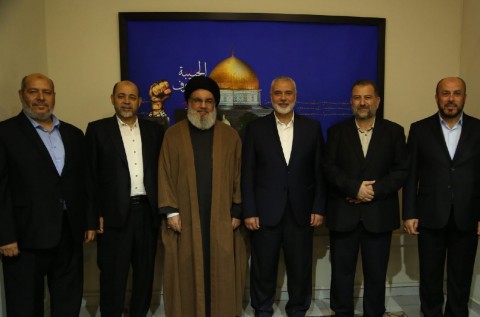 بحث أمين عام حزب الله اللبناني حسن نصرالله، الأربعاء، مع مسؤول العلاقات العربية والإسلامية، نائب رئيس حركة حماس في قطاع غزة خليل الحية، آخر تطورات الأوضاع في قطاع غزة والاحتمالات القائمة على جميع جبهات المقاومة.