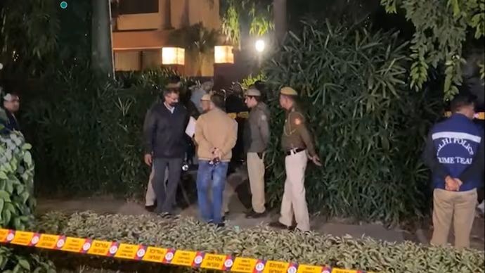 #WATCH | Delhi Police Crime Unit team and forensics team near the Israel Embassy in Delhi to hold a probe after a call was received about a blast today evening pic.twitter.com/nJjDlIWZsF