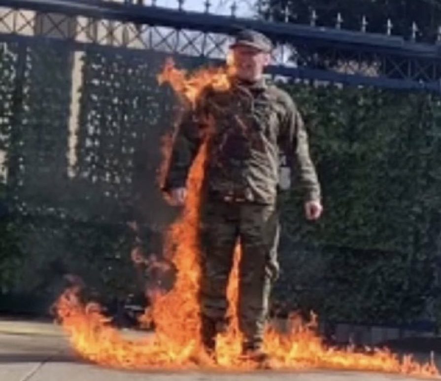 وانتشرت على وسائل التواصل الاجتماعي مشاهد “آرون بوشنل” البالغ من العمر 25 عاما، خلال إضرامه النار في نفسه.